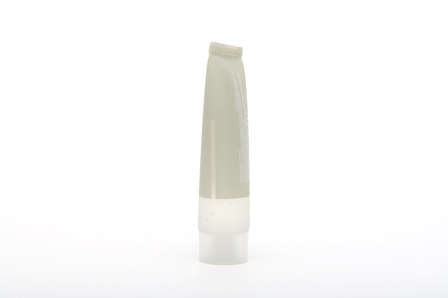 Тюбик выполнен в светло-сером матовом оттенке с полупрозрачной отвинчивающейся крышкой.